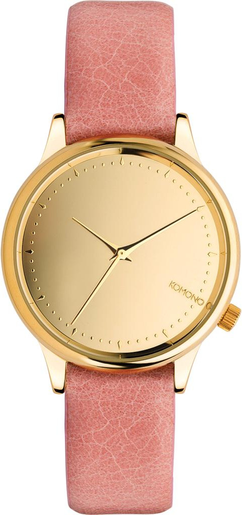 Komono Estelle Mirror Gold/Blush W2870 -rannekellossa voit nähdä ripauksen japanilaista tyyliä ja roppakaupalla belgialaista taidokkuutta. Kullanvärinen runko on halkaisijaltaan 36 mm ja sen kellotaulussa on kaunis peilaava pinta. 16 mm leveä vaaleanpunainen ranneke on materiaaliltaan aitoa nahkaa. Kellossa on luotettava japanilainen koneisto. Toimitus valmistajan alkuperäisessä rasiassa.