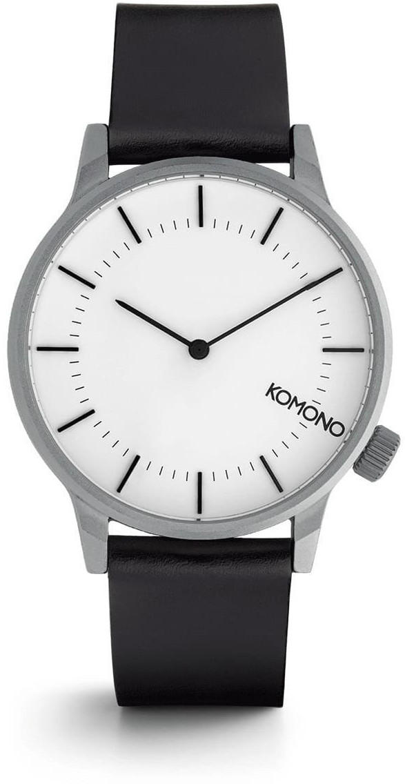 Belgialainen Komono tunnetaan upean kirjavasta kellovalikoimastaan, jossa tämä Winston-malli asettuu ehdottomasti sinne hillitympään päähän. Hopeanvärinen runko on halkaisijaltaan 42 mm ja sen pinnassa on tyylikäs harjattu viimeistely. 20 mm leveä musta ranneke on materiaaliltaan aitoa italialaista nahkaa. Kellossa on luotettava japanilainen koneisto. Toimitus valmistajan alkuperäisessä rasiassa.