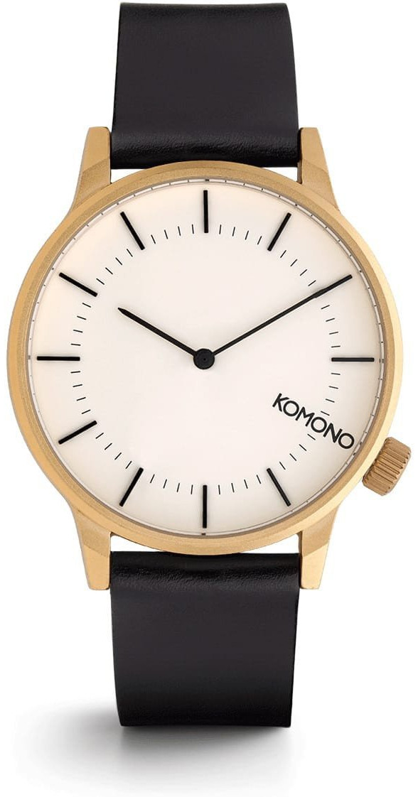 Belgialainen Komono tunnetaan upean kirjavasta kellovalikoimastaan, jossa tämä Winston-malli asettuu ehdottomasti sinne hillitympään päähän. Kullanvärinen runko on halkaisijaltaan 42 mm ja sen pinnassa on tyylikäs harjattu viimeistely. 20 mm leveä musta ranneke on materiaaliltaan aitoa italialaista nahkaa. Kellossa on luotettava japanilainen koneisto. Toimitus valmistajan alkuperäisessä rasiassa.