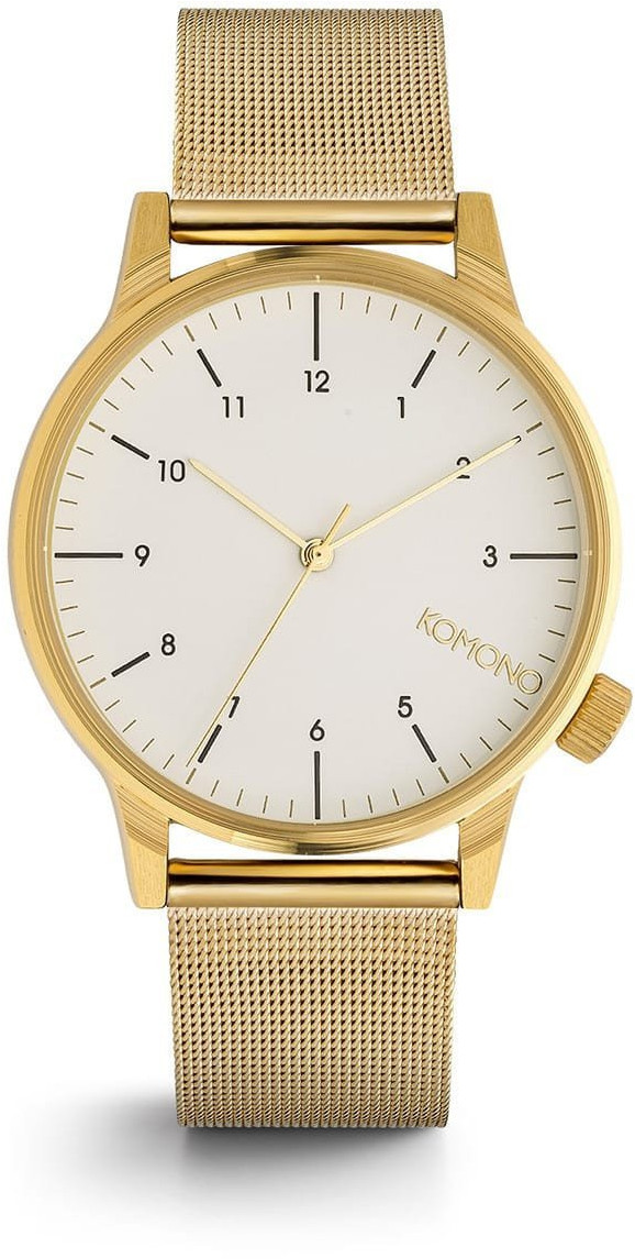 Belgialainen Komono tunnetaan upean kirjavasta kellovalikoimastaan, jossa tämä Winston-malli asettuu aavistuksen hillitympään kategoriaan. Kullanvärinen runko on halkaisijaltaan 42 mm ja sen pinnassa on tyylikäs harjattu viimeistely. 20 mm leveä mesh-ranneke on materiaaliltaan ruostumatonta terästä. Kellossa on luotettava japanilainen koneisto. Toimitus valmistajan alkuperäisessä rasiassa.