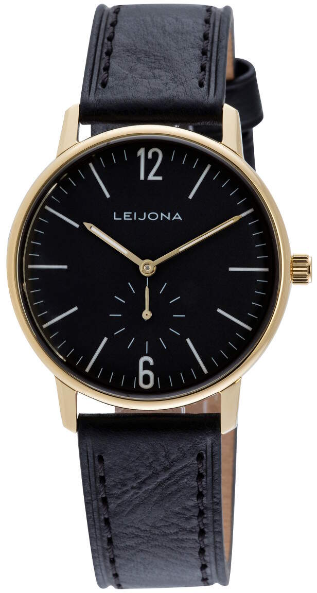 Leijona 5020-2130 miesten rannekello on tyylikäs kokonaisuus. Kellossa on musta nahkaranneke ja kultaisen värinen runko. Rungon leveys on 40mm ja ja paksuus 11mm. Rannekkeen leveys kiinnityskohdasta 20mm. Leijona kelloille myönnetään 2 vuoden takuu ja ne toimitetaan valmistajan alkuperäisessä rasiassa.
