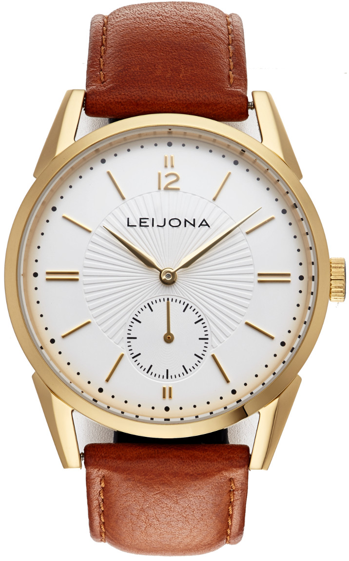 Leijona 5020-2397 on siisti, vaalea miesten rannekello. Huoliteltu ulkoasu sopii mainiosti juhlavampiinkin tilaisuuksiin. Tässä mallissa on 20 mm leveä nahkaranneke ja sen tuntuma kädessä onkin erittäin miellyttävä. Upeaa kuvioitua kellotaulua suojaa mineraalilasi. Kellon runko on 39 mm leveä ja valmistettu ruostumattomasta teräksestä.