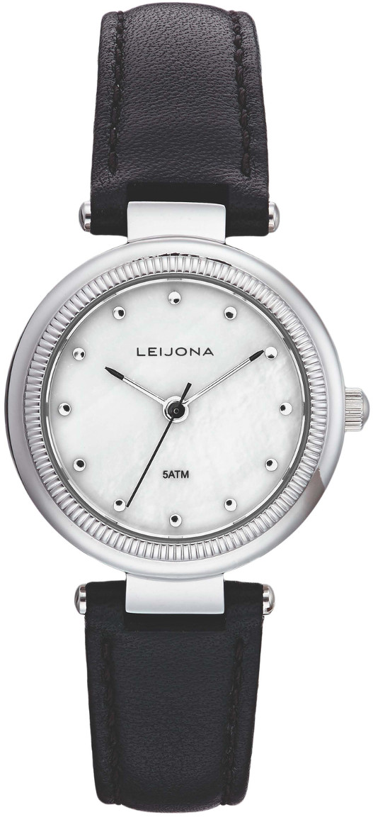 Leijona-rannekello 5120-4520 tekee hyvästä asusta hetkessä erinomaisen! Helmiäispintaista kellotaulua kehystää hopeanvärinen runko, jonka leveys on 27 mm. Rungossa on käytetty materiaalina ruostumatonta terästä, mustassa rannekkeessa puolestaan aitoa nahkaa. Rannekkeen leveys kiinnityskohdasta on 14 mm.