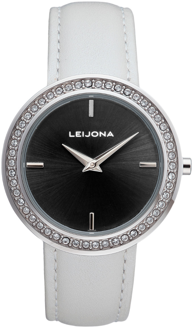 Leijona-rannekello 5120-4551 tekee hyvästä asusta hetkessä erinomaisen! Mustaa kellotaulua kehystää zirkonioin koristeltu runko, jonka leveys on 35 mm. Hopeanvärisessä rungossa on käytetty materiaalina ruostumatonta terästä, rannekkeessa puolestaan aitoa nahkaa. Rannekkeen leveys kiinnityskohdasta on 18 mm.