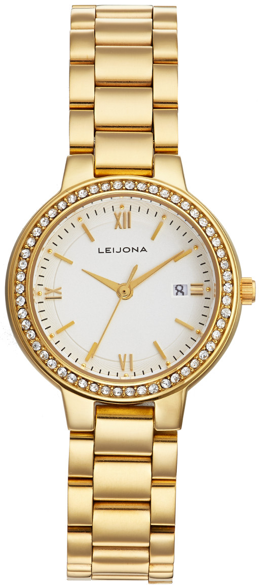 Leijona 5170-4436 -rannekello on varsin viehkeä ilmestys. Kirkkaiden zirkonioidensa ansiosta kello suorastaan hehkuu käyttäjänsä ranteessa! Tässä mallissa teräksinen runko ja ranneke ovat saaneet upean kullanvärisen peitteen. Leveyttä osilla on 30 ja 14 mm. Tutustuthan myös sarjan muihin ihastuttaviin tuotteisiin!