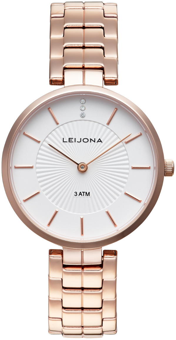 Hemmottele itseäsi tällä Leijona 5170-4477 -rannekellolla! Ihana punakullan värinen pinta ja siro muotoilu ovat kauniin naisellisia piirteitä ja tekevätkin vaikutuksen heti ensisilmäyksellä. Lisäksi valkoisessa kellotaulussa sädehtivät kirkkaat zirkoniat. Kello on valmistettu ruostumattomasta teräksestä ja sen rungon halkaisija on 33 mm. Rannekkeella leveyttä on 14 mm. Tutustuthan myös sarjan muihin ihastuttaviin tuotteisiin!