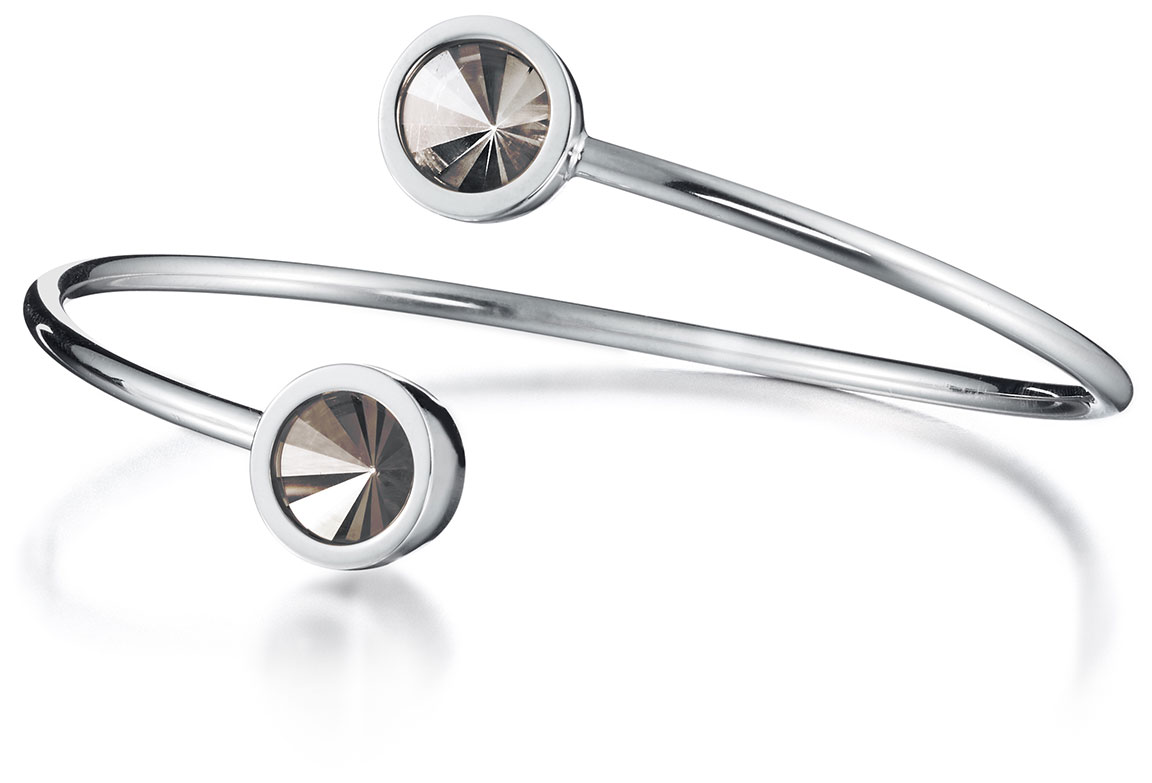 Lumoava Lume rannekoru savukvartsi L5320122300. Päivi Keski-Pompun suunnittelema koru on valmistettu sterling-hopeasta ja sitä on saatavilla kahdessa eri koossa. Renkaan molemmissa päissä säteilee 9,3 mm leveä savukvartsi.
