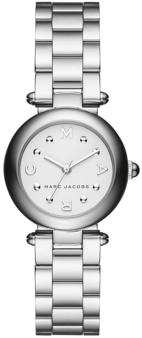 Marc by Marc Jacobs MJ3485 naisten rannekello on tyylikäs kokonaisuus käytettäväksi niin arkeen kuin juhlaankin. Ruostumattomasta teräksestä valmistetun, hopean värisen rungon leveys on 26mm ja paksuus 11mm. Rannekkeen leveys on 14mm. Marc By Marc Jacobs kelloille myönnetään 2 vuoden takuu ja ne toimitetaan valmistajan alkuperäisessä rasiassa. Voimme kaivertaa veloituksetta kellon takakanteen esimerkiksi nimikirjaimet ja päivämäärän (maksimissaan 10 merkkiä). Valitse ensin kaiverrus ja kaiverruksessa käytettävä tekstityyli, ja kirjoita kaiverrettavat tiedot "kaiverrettava teksti" -kenttään. Huom, Kaiverretuilla tuotteilla ei ole palautusoikeutta!