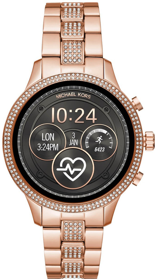 Et ehkä tiennyt tarvitsevasi älykelloa ranteeseesi, mutta Michael Kors Access Runway MKT5052 on valmiina muuttamaan mielesi! Mullistavat arjen ominaisuudet lähimaksusta kalenteritapahtumiin helpottavat elämääsi huomattavasti, samalla kun syke- ja askelmittari kannustavat liikkumaan säännöllisesti. Lisäksi kello tukee Google Fit -palvelua, joka on sinulle kuin oma henkilökohtainen valmentaja. Mikäli siis olet joskus haaveillut terveellisemmistä elämäntavoista, niiden saavuttaminen on nyt lähempänä kuin uskotkaan! Tämä malli on valmistettu ruostumattomasta teräksestä ja sen upea zirkonioin koristeltu pinta sulautuu vaivattomasti korujesi ja muiden asusteidesi joukkoon. Kaiken kukkuraksi laitteen kustomointimahdollisuudet ovat erinomaiset - hihnoja ja näytön teemoja vaihtamalla kellon tyyliä on helppo vaihtaa vaikka päivittäin! Access Runway -mallisto on yhteensopiva sekä iPhone- että Android -laitteiden kanssa.