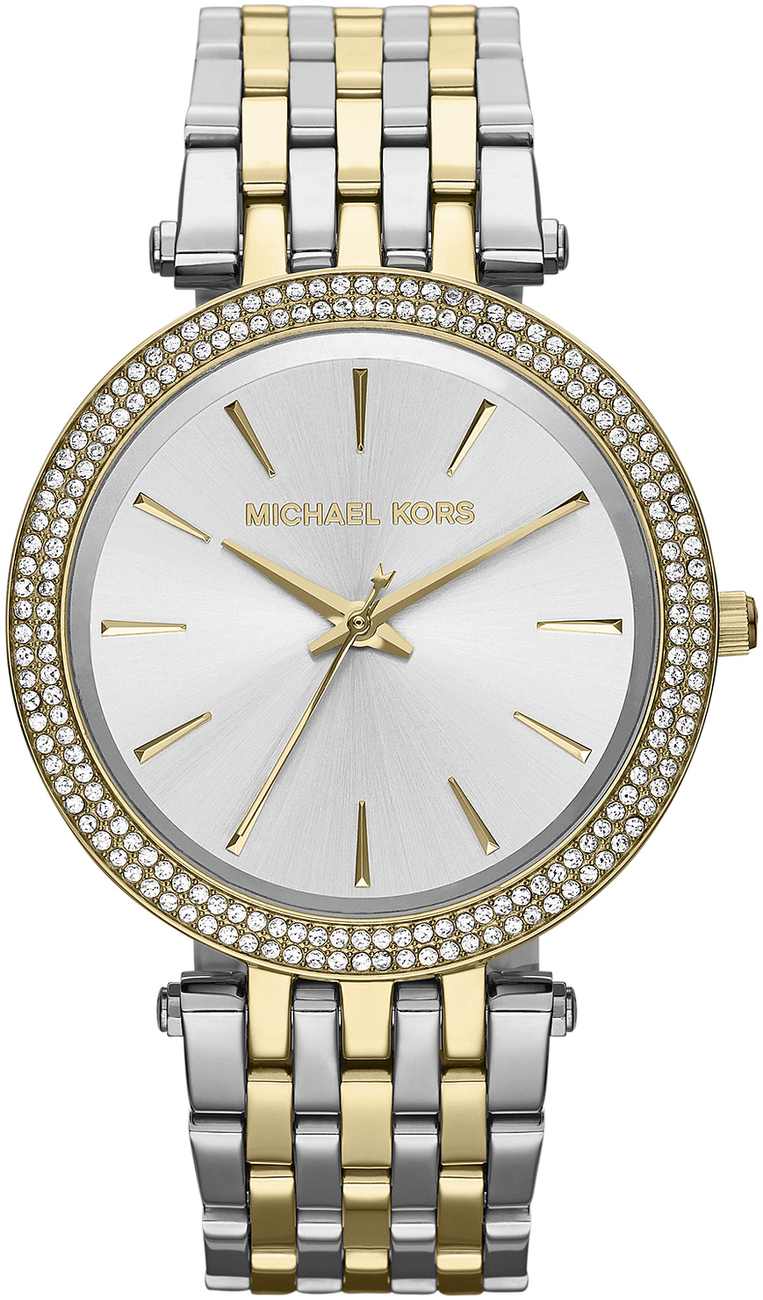 Naisten kaksivärisen Michael Kors MK3215 rannekellon kellotaulun ympärillä on zirconia korukiviä tuomassa loistoa. Ruostumattomasta teräksestä valmistetun rungon leveys on 39mm ja paksuus 7mm. Rannekkeen leveys on 18mm. Tuotteen nimi kokonaisuudessaan on Michael Kors MK3215 Silver Dial Two-tone. Michael Kors kelloille myönnetään kahden vuoden takuu ja ne toimitetaan valmistajan alkuperäisessä rasiassa postikuluitta!