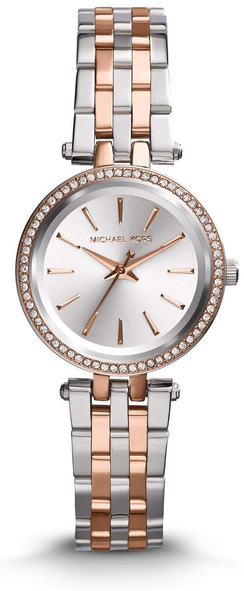 Michael Kors MK3298 Petite Darci Silver Dial Two-tone on siro kaksivärinen naisten kello. Kellon runko on leveydeltään 26mm ja paksuus 7mm. Rannekkeen leveys 12mm. Laadukkaille Michael Kors kelloille myönnetään kahden vuoden takuu ja ne toimitetaan valmistajan alkuperäisessä rasiassa.