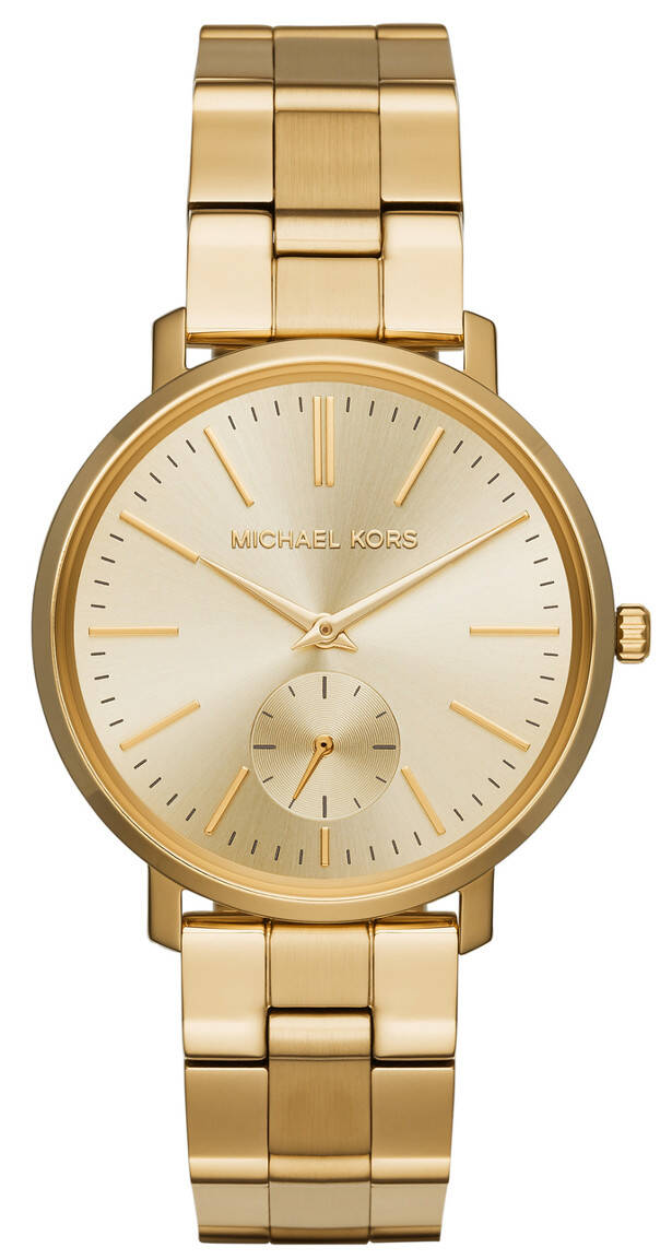 Michael Kors MK3500 Jaryn -kello on kullanetsijälle oikea löytö! Kauttaaltaan kultainen kellon runko ja ranneke on valmistettu ruostumattomasta teräksestä. Ominaisuutena kellosta löytyy myös sekuntiosoitin kello kuuden kohdalla. Kellon rungon leveys on 38mm ja paksuus 9.5mm. Rannekkeen leveys kiinnityskohdasta on 17.8mm. Michael Kors -kelloille myönnetään 2 vuoden takuu ja ne toimitetaan valmistajan alkuperäisessä rasiassa. Voimme kaivertaa veloituksetta kellon takakanteen esimerkiksi nimikirjaimet ja päivämäärän (maksimissaan 20 merkkiä). Valitse ensin kaiverrus ja kaiverruksessa käytettävä tekstityyli ja kirjoita kaiverrettavat tiedot "kaiverrettava teksti" -kenttään. Huom! Kaiverretuilla tuotteilla ei ole palautusoikeutta!
