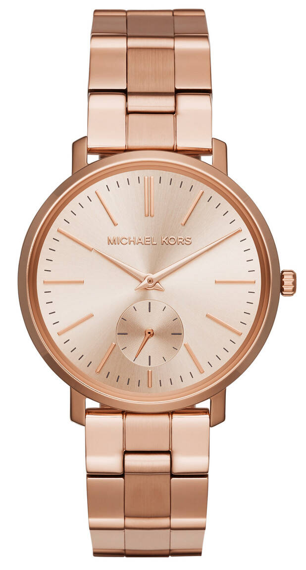 Michael Kors MK3501 Jaryn -kello on punakullanetsijälle oikea löytö! Kauttaaltaan punakultainen kellon runko ja ranneke on valmistettu ruostumattomasta teräksestä. Ominaisuutena kellosta löytyy myös sekuntiosoitin kello kuuden kohdalla. Kellon rungon leveys on 38mm ja paksuus 9.5mm. Rannekkeen leveys kiinnityskohdasta on 17.8mm. Michael Kors -kelloille myönnetään 2 vuoden takuu ja ne toimitetaan valmistajan alkuperäisessä rasiassa. Voimme kaivertaa veloituksetta kellon takakanteen esimerkiksi nimikirjaimet ja päivämäärän (maksimissaan 20 merkkiä). Valitse ensin kaiverrus ja kaiverruksessa käytettävä tekstityyli ja kirjoita kaiverrettavat tiedot "kaiverrettava teksti" -kenttään. Huom! Kaiverretuilla tuotteilla ei ole palautusoikeutta!