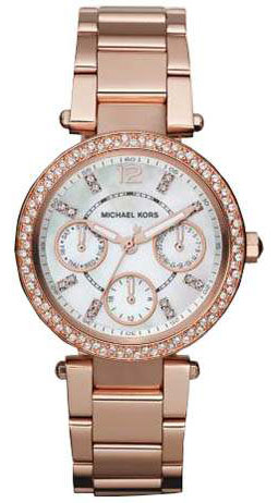 Naisten tyylikkään Michael Kors MK5616 rannekellon helmiäisen värisessä kellotaulussa ja sen ympärillä on zirkonia korukiviä tuomassa loistoa. Ruostumattomasta teräksestä valmistetun rungon leveys on 33mm ja paksuus 11mm. Rannekkeen leveys on 16mm. Tuotteen nimi kokonaisuudessaan on Michael Kors MK5616 Parker Rose Gold-tone. Michael Kors kelloille myönnetään kahden vuoden takuu ja ne toimitetaan valmistajan alkuperäisessä rasiassa!