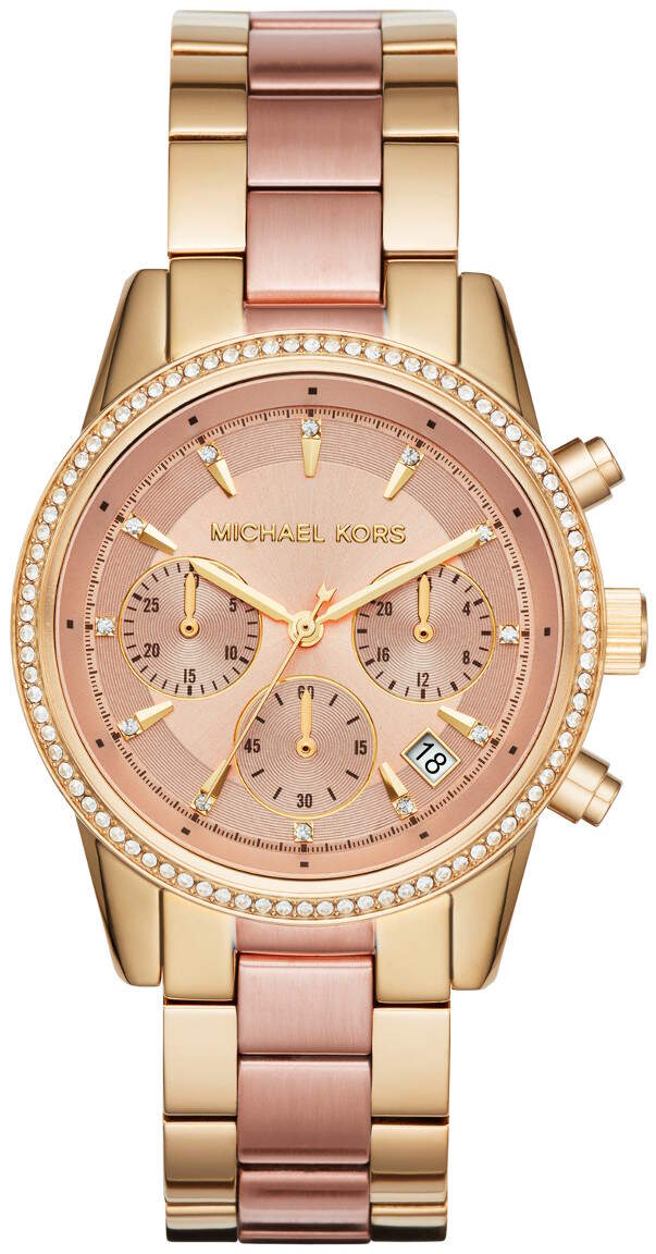 Michael Kors MK6475 Bryant -kellon väritys on sekoitus kultaa ja ruusukultaa. Kellon kehässä säihkyvät zirconia korukivet. Ominaisuuksina päivyri, 24h näyttö sekä ajanotto. Kellon runko on leveydeltään 37mm ja paksuudeltaan 1mm. Rannekkeen leveys kiinnityskohdasta on 18mm. Laadukkaille Michael Kors kelloille myönnetään kahden vuoden takuu ja ne toimitetaan valmistajan alkuperäisessä rasiassa.