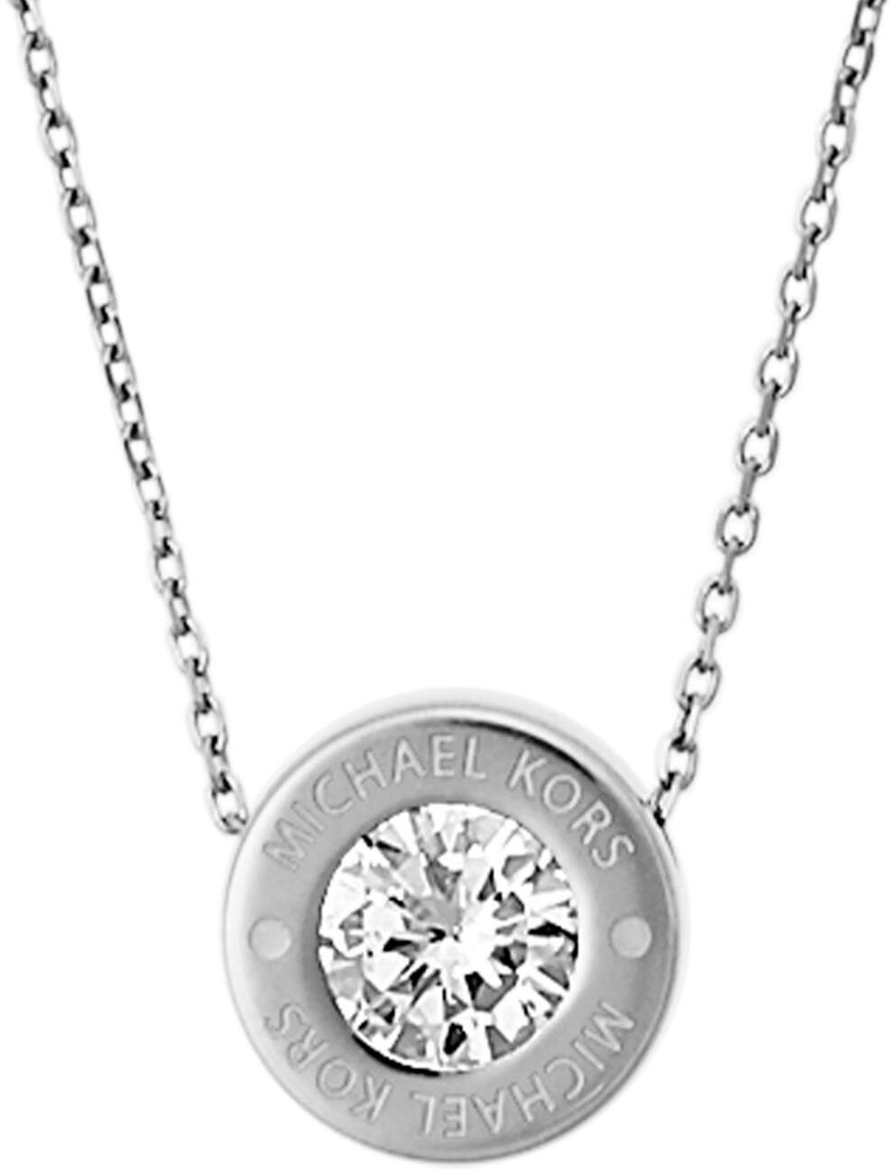 Naisten Michael Kors MKJ5341040 kaulakoru on elegantti kokonaisuus. Siro ketju on pituudeltaan 45 cm, mutta sen saa säädettyä myös 40 cm pituuteen. Kiinnityksenä kaulakorussa toimii papukaijalukko. Upea riipus osio on halkaisijaltaan 11 mm ja sitä koristaa säihkyvä zirkonia korukivi ja riipuksen takana kirjaimet MK. Kaulakoru on valmistettu ruostumattomasta teräksestä. Kaulakoru toimitetaan Michael Korssin alkuperäisessä rasiassa.