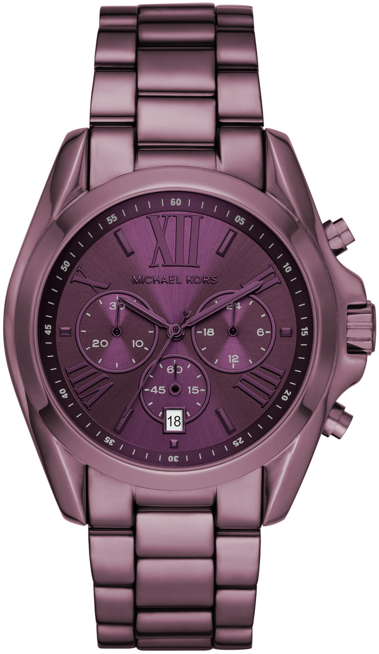 Michael Kors Oversized Bradshaw Chronograph Lavender-tone MK6721-rannekellossa on uusi trendikäs tumman laventelin sävy ja klassisuutta moderniin kokonaisuuteen tuo suuret roomalaiset numeraalit. Kello näyttää tyylikkäältä yksinään tai somistettuna useilla erilaisilla teräskoruilla. Ominaisuuksiin kuuluu päivyri, ajanotto ja 24 tunnin kello. Rungon leveys on 48 mm ja rannekkeen leveys 22 mm. Michael Kors-kellot toimitetaan valmistajan alkuperäisessä pakkauksessa, ja niillä on 2 vuoden takuu.