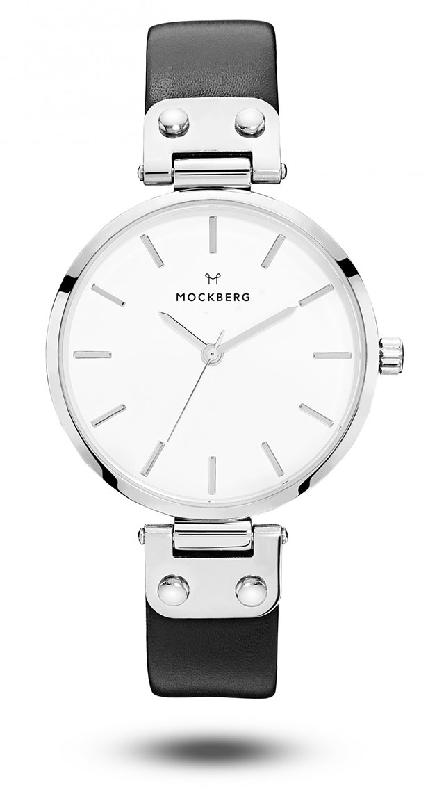 Mockberg Astrid MO102 kellossa on hopeanvärinen runko, valkoinen kellotaulu ja musta nahkaranneke. Rungon leveys on 34mm ja paksuus 7,6mm. Rannekkeen leveys on 13mm. Kellossa on laadukas japanilainen Miyota Super 2035 paristokoneisto. Mockberg kelloille myönnetään 2 vuoden takuu ja ne toimitetaan valmistajan alkuperäisessä rasiassa.