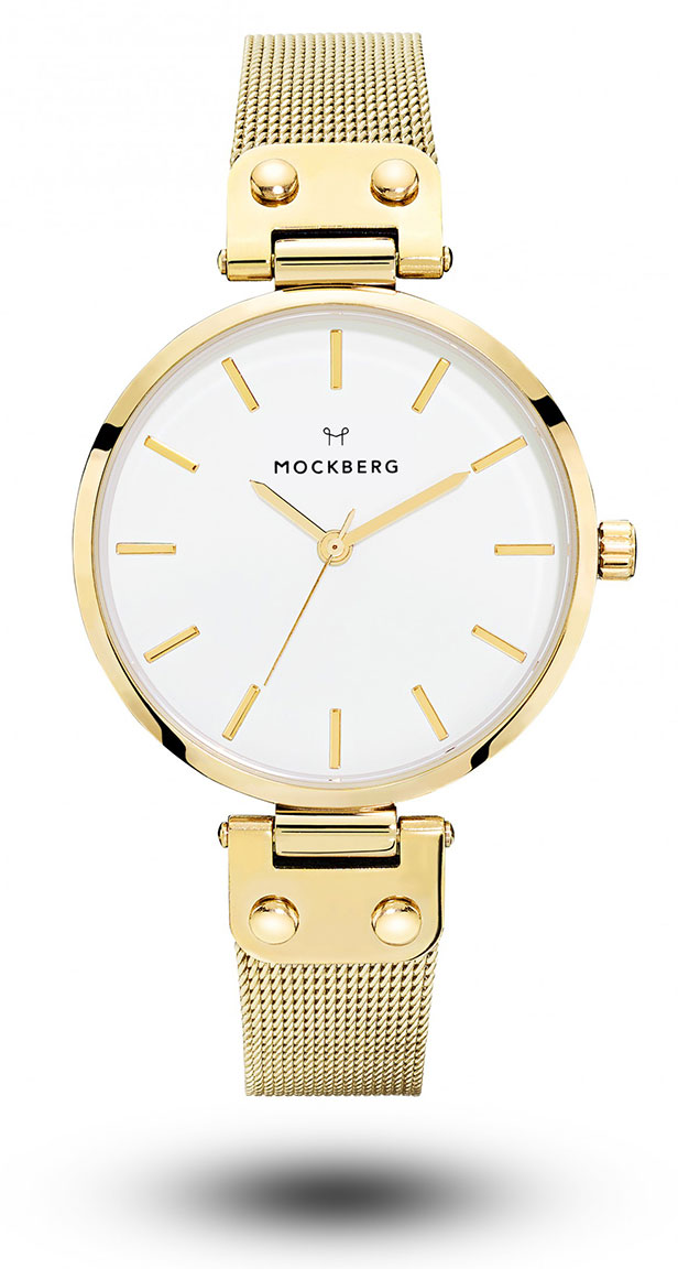 Mockberg Livia MO301 kellossa on kullanvärinen runko, valkoinen kellotaulu ja kullanvärinen kapea mesh-ranneke. Rungon leveys on 34mm ja paksuus 7,6mm. Rannekkeen leveys on 13mm. Kellossa on laadukas japanilainen Miyota Super 2035 paristokoneisto. Mockberg kelloille myönnetään 2 vuoden takuu ja ne toimitetaan valmistajan alkuperäisessä rasiassa.