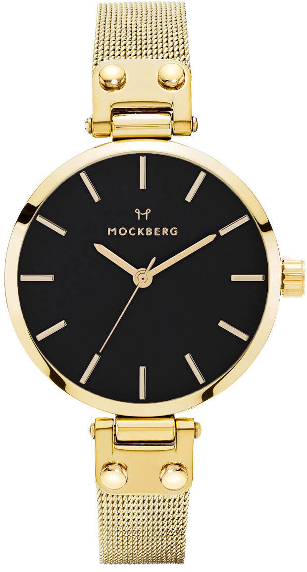 Mockberg Livia Petite Noir MO403 on sirompi versio suositusta Mockberg kellosta. Tässä mallissa on muodikas kullanvärinen mesh-ranneke. Kellon runko on myös kullanvärinen ja kellotaulu on musta. Rungon leveys on 28mm ja paksuus 7,2mm. Rannekkeen leveys on 13mm. Kellossa on laadukas japanilainen Miyota Super 2035 paristokoneisto. Mockberg kelloille myönnetään 2 vuoden takuu ja ne toimitetaan valmistajan alkuperäisessä rasiassa.