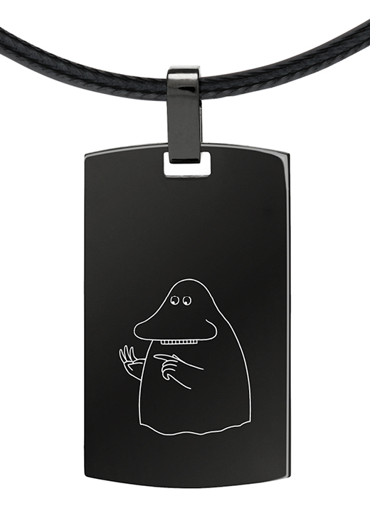 Muumi Mörkö riipus MO361501850 on Muumien virallinen lisensoitu fanituote vuodelle vuodelle 2019. Mustaan 1,8 x 3 cm kokoiseen teräsriipukseen on kaiverrettu Mörkö-hahmo ja riipuksen mukana tulee 50 cm pitkä musta vahattu puuvillanauha papukaijalukolla. Tuotetta on saaatavilla rajattu erä. Riipus toimitetaan valmistajan alkuperäisessä pakkauksessa.