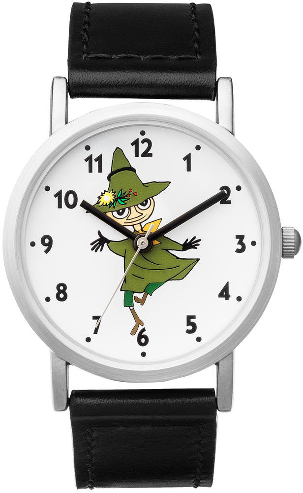 Muumi -rannekellossa MOW025-1202 tanssahtelee Muumilaakson rakastettu oman tiensä kulkija, Nuuskamuikkunen. Iloisen olemuksensa ansiosta tämä kello onkin takuuvarma piristys päivään. Kellossa on nahkaranneke ja 25 mm leveä runko. Kaikki valloittavat Muumi-tuotteet toimitetaan valmistajan alkuperäisessä pakkauksessa.