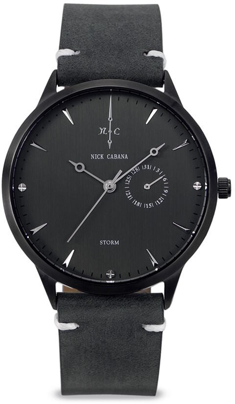 Nick Cabana Nilaya Storm 233 -kellossa on gun metallin harmaa runko ja tummanharmaa nahkaranneke sekä tummaharmaa kellotaulu. Koneistona on laadukas Japanilainen Miyota paristokoneisto. Rungon leveys on 40mm ja paksuus vain 7mm. Rannekkeen kiinnityskohdan leveys 20mm. Nick Cabana kelloille myönnetään 2 vuoden takuu ja ne toimitetaan valmistajan alkuperäisessä rasiassa.