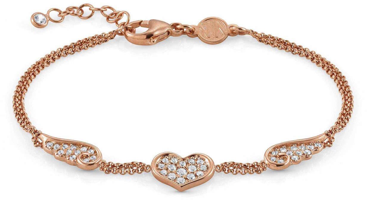 Nomination Angel 145382/011 -rannekoru nostattaa mielesi yläilmoihin! Koru on valmistettu 925-Sterling hopeasta jonka päällyste on 22k punakultaa ja sen sydän- ja siipiriipukset ovat koristeltu zirkonia-kivin. Korussa on papukaijalukitus jolla voit hienosäätää korun pituutta. Korun pituus on säädettävissä välillä 16-18.5cm. Nomination -korut toimitetaan valmistajan alkuperäisessä pakkauksessa.