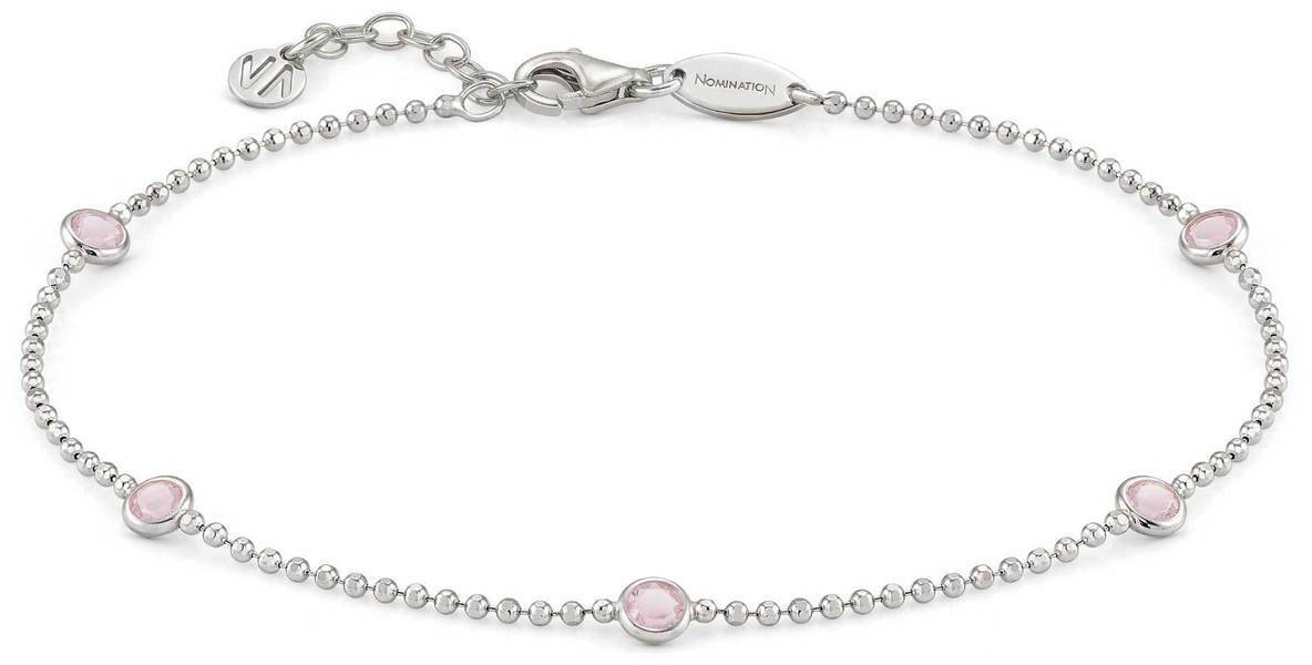 Nomination Bella 146640/035 -nilkkakoru on materiaaliltaan laadukasta 925 sterling hopeaa. Palloketjusta valmistetun korun pituus on säädettävissä välille 22-24cm ja vaaleanpunaiset kristallit ovat halkaisijaltaan 4mm. Nomination korut toimitetaan valmistajan alkuperäisessä rasiassa!