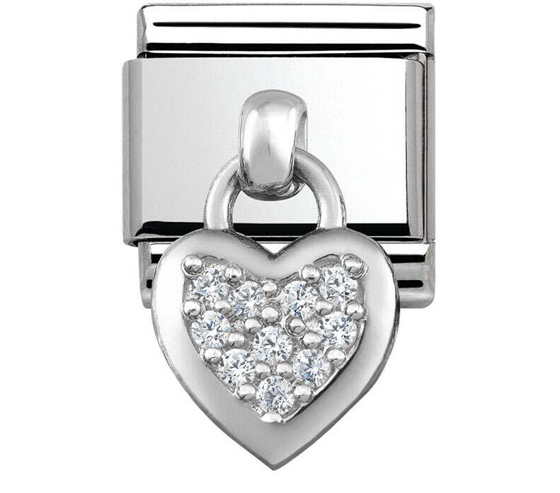 Nomination Charms 331800-01 Heart on valmistettu laadukkaasta ruostumattomasta teräksestä ja 925-Sterling hopeasta. Palaa koristavat säihkyvät zirkoniat. Nomination paloille myönnetään kahden vuoden takuu!