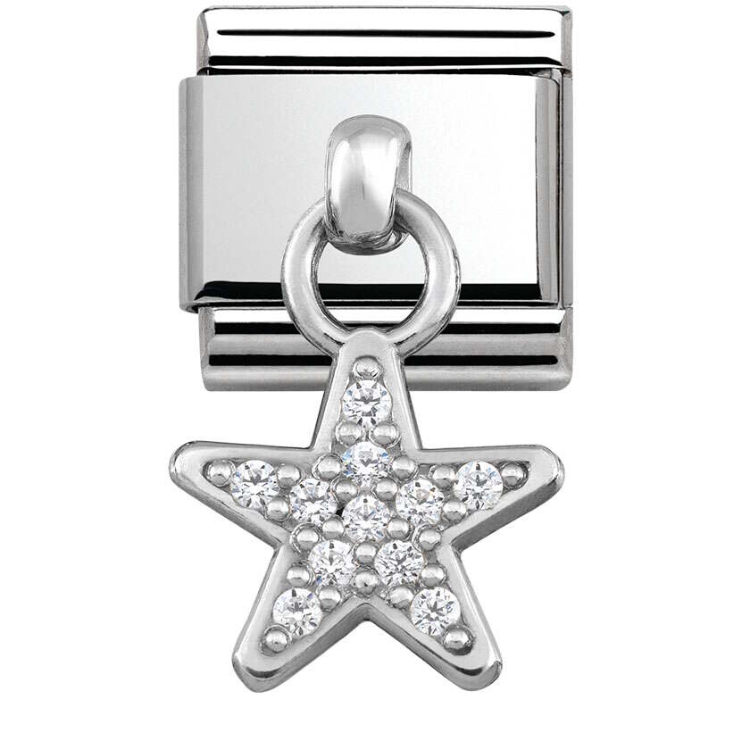 Nomination Charms 331800-05 Star on valmistettu laadukkaasta ruostumattomasta teräksestä ja 925-Sterling hopeasta. Palaa koristavat säihkyvät zirkoniat. Nomination paloille myönnetään kahden vuoden takuu!