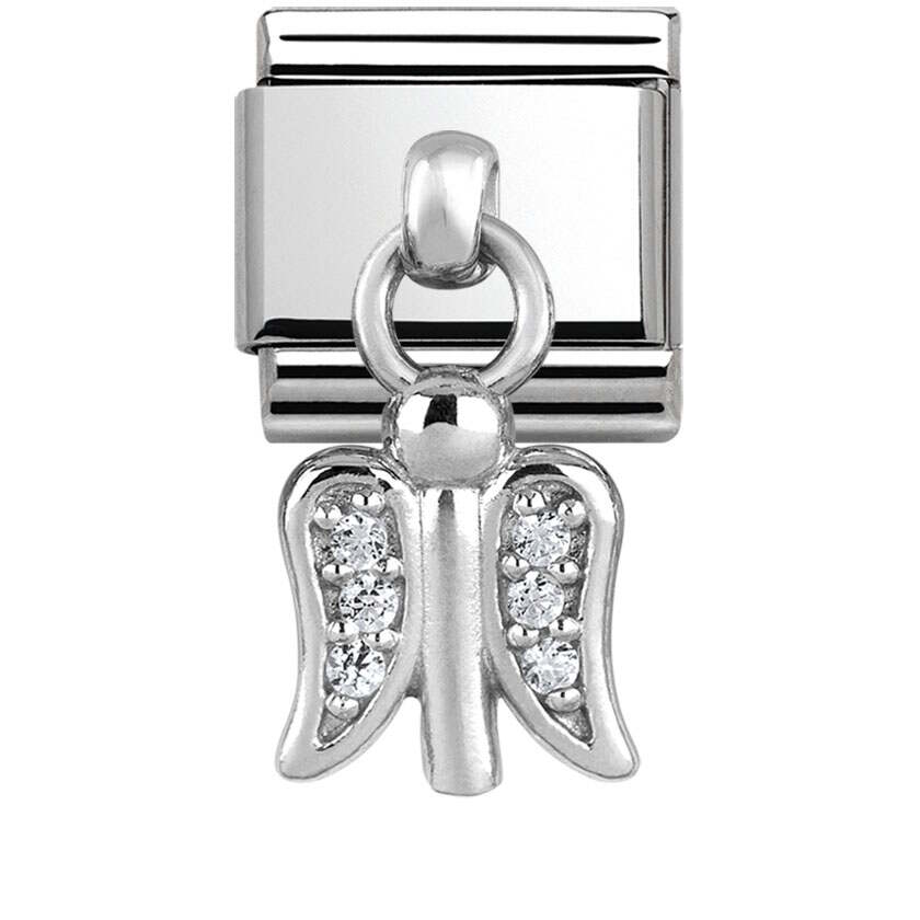 Nomination charms 331800-11 Angel on valmistettu laadukkaasta ruostumattomasta teräksestä ja 925-Sterling hopeasta. Palaa koristavat säihkyvät zirkoniat. Nomination paloille myönnetään kahden vuoden takuu!