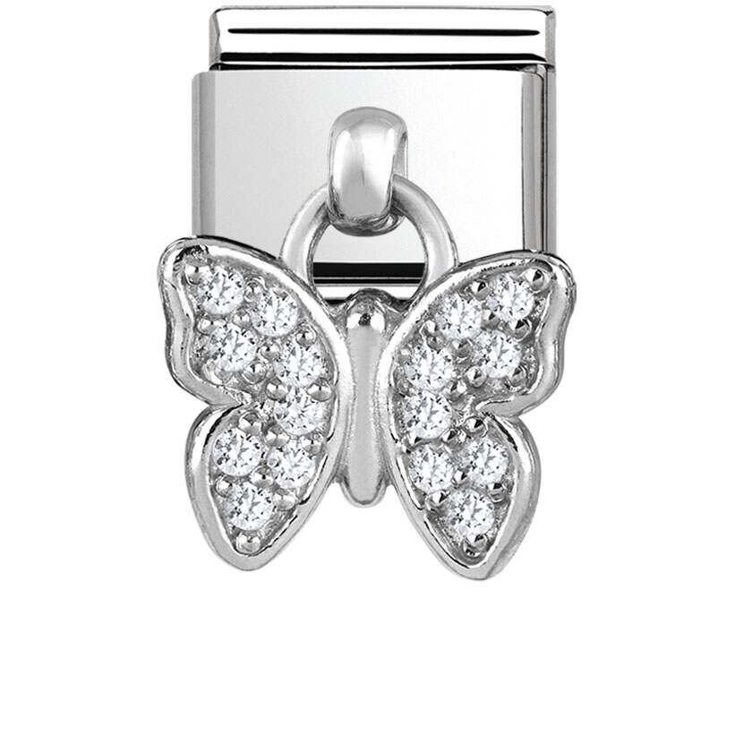 Nomination charms 331800-16 Butterfly on valmistettu laadukkaasta ruostumattomasta teräksestä ja 925-Sterling hopeasta. Palaa koristavat säihkyvät zirkoniat. Nomination paloille myönnetään kahden vuoden takuu!