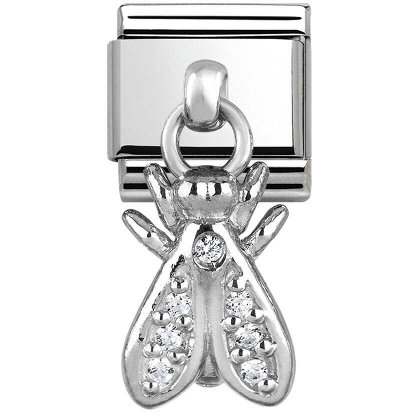 Nomination charms 331800-21 Fly on valmistettu laadukkaasta ruostumattomasta teräksestä ja 925-Sterling hopeasta. Palaa koristavat säihkyvät zirkoniat. Nomination paloille myönnetään kahden vuoden takuu!