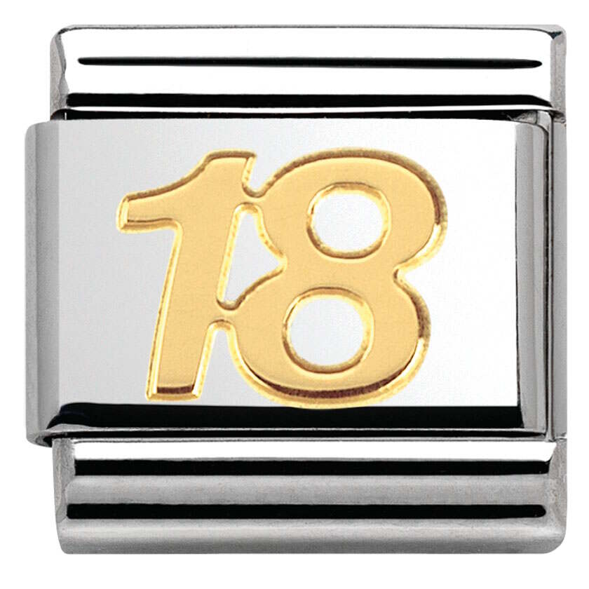 Nomination Classic 030109-34 Eighteen, on oiva lahja 18 vuotta täyttävälle! Nomination palat ovat valmistettu laadukkaasta ruostumattomasta teräksestä ja 18k kullasta. Nomination paloille myönnetään kahden vuoden takuu!