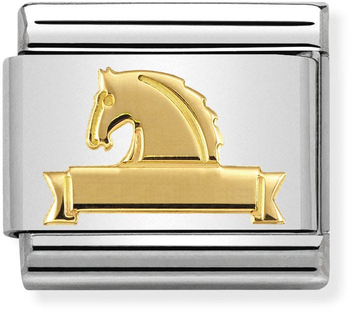 Nomination Classic 030149-25 Horse at Fence. Nomination palat ovat valmistettu laadukkaasta ruostumattomasta teräksestä ja 18k kullasta. Nomination paloille myönnetään kahden vuoden takuu!