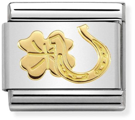 Nomination Classic 030149-34 Horseshoe and Four-Leaf Clover. Nomination palat ovat valmistettu laadukkaasta ruostumattomasta teräksestä ja 18k kullasta. Nomination paloille myönnetään kahden vuoden takuu!