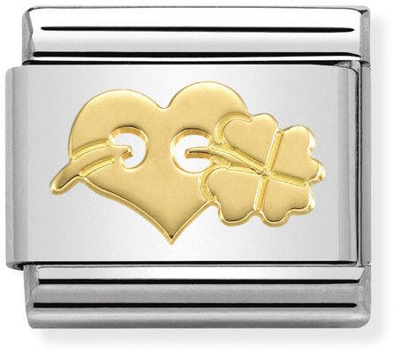 Nomination classic 030162-30 Heart & four-leaf clover. Nomination palat ovat valmistettu laadukkaasta ruostumattomasta teräksestä ja 18k kullasta. Nomination paloille myönnetään kahden vuoden takuu!
