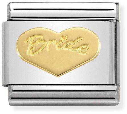 Nomination classic 030162-33 Bride heart. Nomination palat ovat valmistettu laadukkaasta ruostumattomasta teräksestä ja 18k kullasta. Nomination paloille myönnetään kahden vuoden takuu!