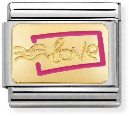 Nomination classic 030284-16 Love stamp. Nomination palat ovat valmistettu laadukkaasta ruostumattomasta teräksestä ja 18k kullasta. Koristuksena pinkkiä emalia. Nomination paloille myönnetään kahden vuoden takuu!