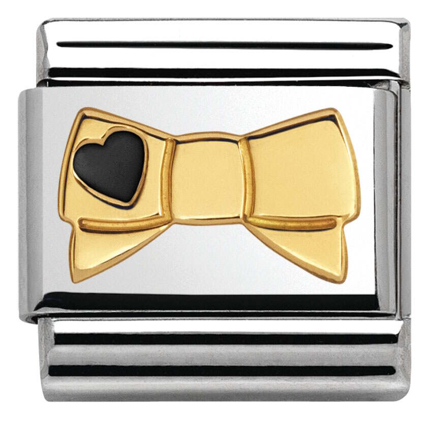 Nomination classic 030285-44 Bow with black heart. Nomination palat ovat valmistettu laadukkaasta ruostumattomasta teräksestä ja 18k kullasta. Sydän on mustaa emalia. Nomination paloille myönnetään kahden vuoden takuu!