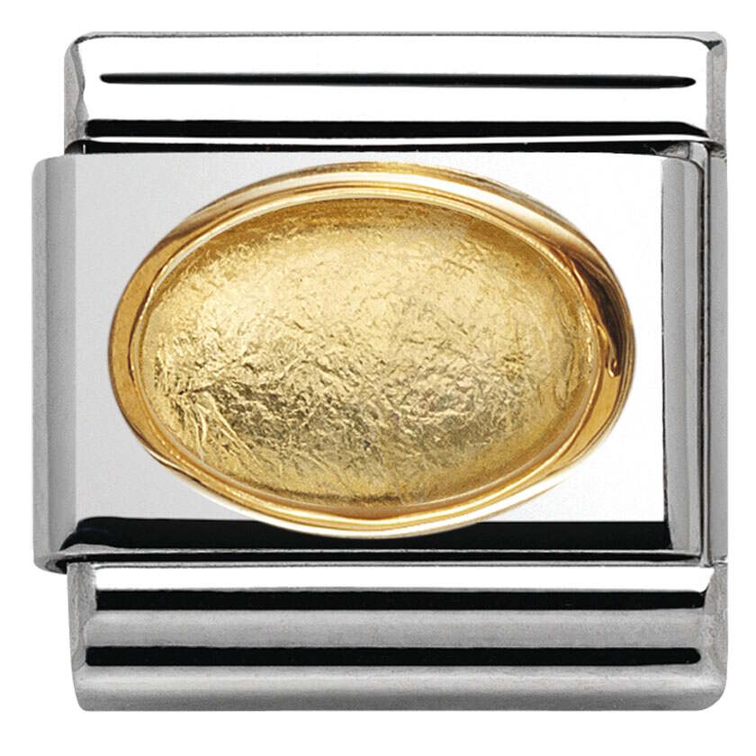 Nomination classic 030516-02 Golden leaf. Nomination palat ovat valmistettu laadukkaasta ruostumattomasta teräksestä ja 18k kullasta. Palaa koristaa kaunis vuorikristalli, jonka alla on lehtikultaa. Nomination paloille myönnetään kahden vuoden takuu!