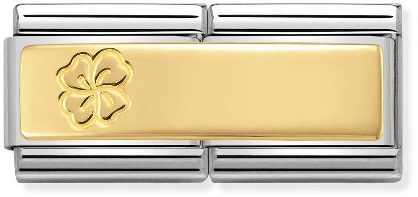 Nomination Classic gold double 030710-13 Four-Leaf Clover kaiverrettava. Nomination palat ovat valmistettu laadukkaasta ruostumattomasta teräksestä ja 18k kullasta. Nomination paloille myönnetään kahden vuoden takuu!