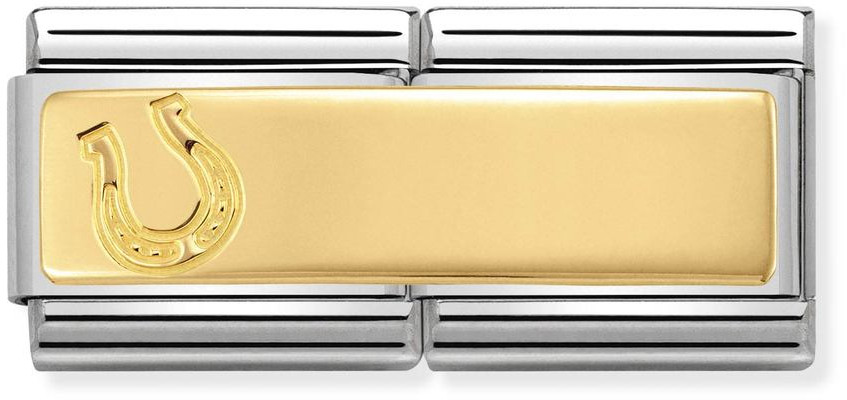 Nomination Classic gold double 030710-14 Horseshoe kaiverrettava. Nomination palat ovat valmistettu laadukkaasta ruostumattomasta teräksestä ja 18k kullasta. Nomination paloille myönnetään kahden vuoden takuu!