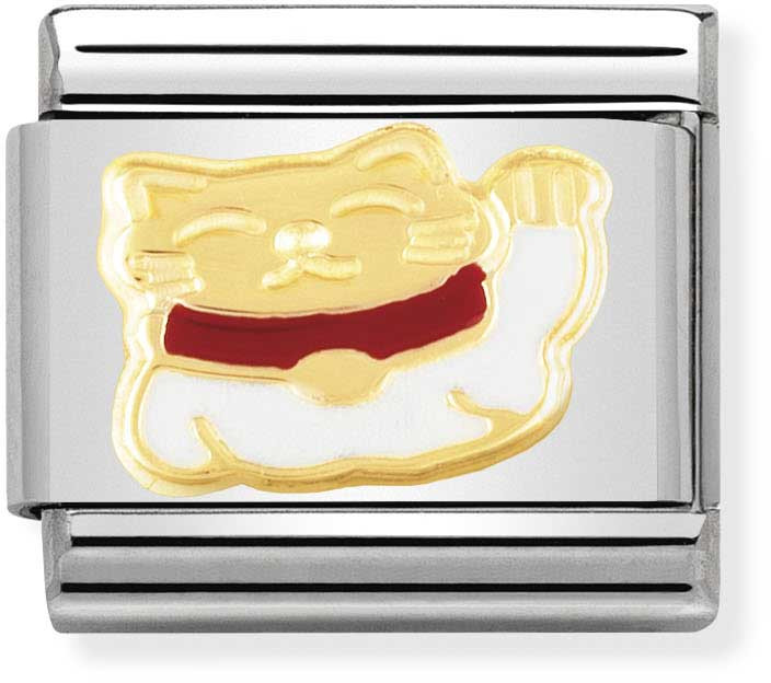 Nomination Classic Gold Maneki Neko Cat 030248-14 -korupalassa on kuvattuna Manaki Neko kissa, joka on japanilainen onnenamuletti. Pala on valmistettu ruostumattomasta teräksestä, ja kuvio on 18 karaatin kultaa. Pala on värjätty emalimaalilla. Nomination-paloille myönnetään kahden vuoden takuu.