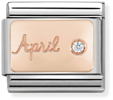 Nomination Classic RoseGold 430508-04 April. Nomination palat ovat valmistettu laadukkaasta ruostumattomasta teräksestä ja 9k punakullasta. Palaan on istutettu timantti. Nomination paloille myönnetään kahden vuoden takuu!