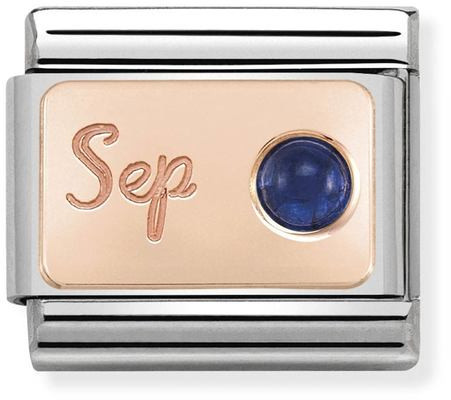 Nomination Classic RoseGold 430508-09 September. Nomination palat ovat valmistettu laadukkaasta ruostumattomasta teräksestä ja 9k punakullasta. Palaan on istutettu sininen safiiri. Nomination paloille myönnetään kahden vuoden takuu!