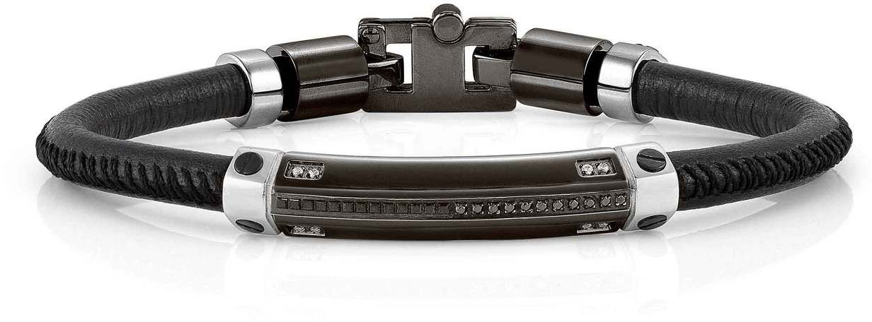 Nomination Gentleman Black rannekoru 132901/015 on todella näyttävä rannekoru miehelle. Korun teräsosat on PVD pinnoitettu mustaksi. Koru on valmistettu nahasta ja ruostumattomasta teräksestä. Sitä koristavat myös mustat spinelli korukivet sekä 8 timanttia. Timantit ovat 0,005 karaatin timantteja. Korun pituus on 21,5 cm. Kivellisen teräsosan leveys on 40 mm ja paksuus 7,5 mm. Italialaiset Nomination-korut toimitetaan valmistajan alkuperäisessä pakkauksessa.