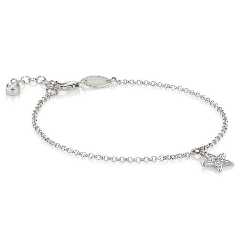 Nomination Gioie rannekoru Star 146200/005. Rannekorun katseenvangitsijana on riippuva tähti. Tähti sädehtii kauniisti, sillä siihen on istutettu kirkkaita zirkonia korukiviä. Tähden halkaisija on 9 mm. Rannekorun pituus on säädettävissä välillä 17-19 cm ja kiinnityksenä korussa on papukaijalukko. Rannekoru on valmistettu laadukkaasta 925 sterling hopeasta. Nomination korut toimitetaan valmistajan alkuperäisessä rasiassa!