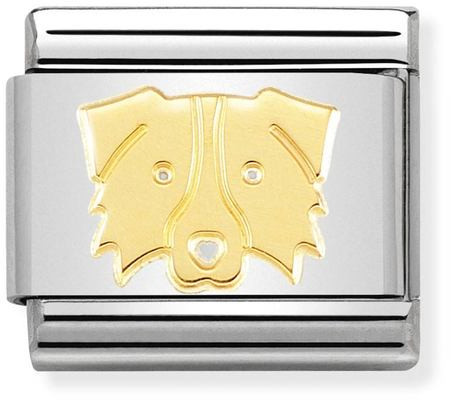Eläinaiheiset Nomination Gold -palat ovat ihana lahjaidea lemmikinomistajille ja muille kaikenkarvaisista otuksista pitäville. Suositun paimenkoirarodun mukaan nimetty Border Collie 030162-59 -malli on syntynyt ruostumattomasta teräksestä ja 18 kt kullasta.